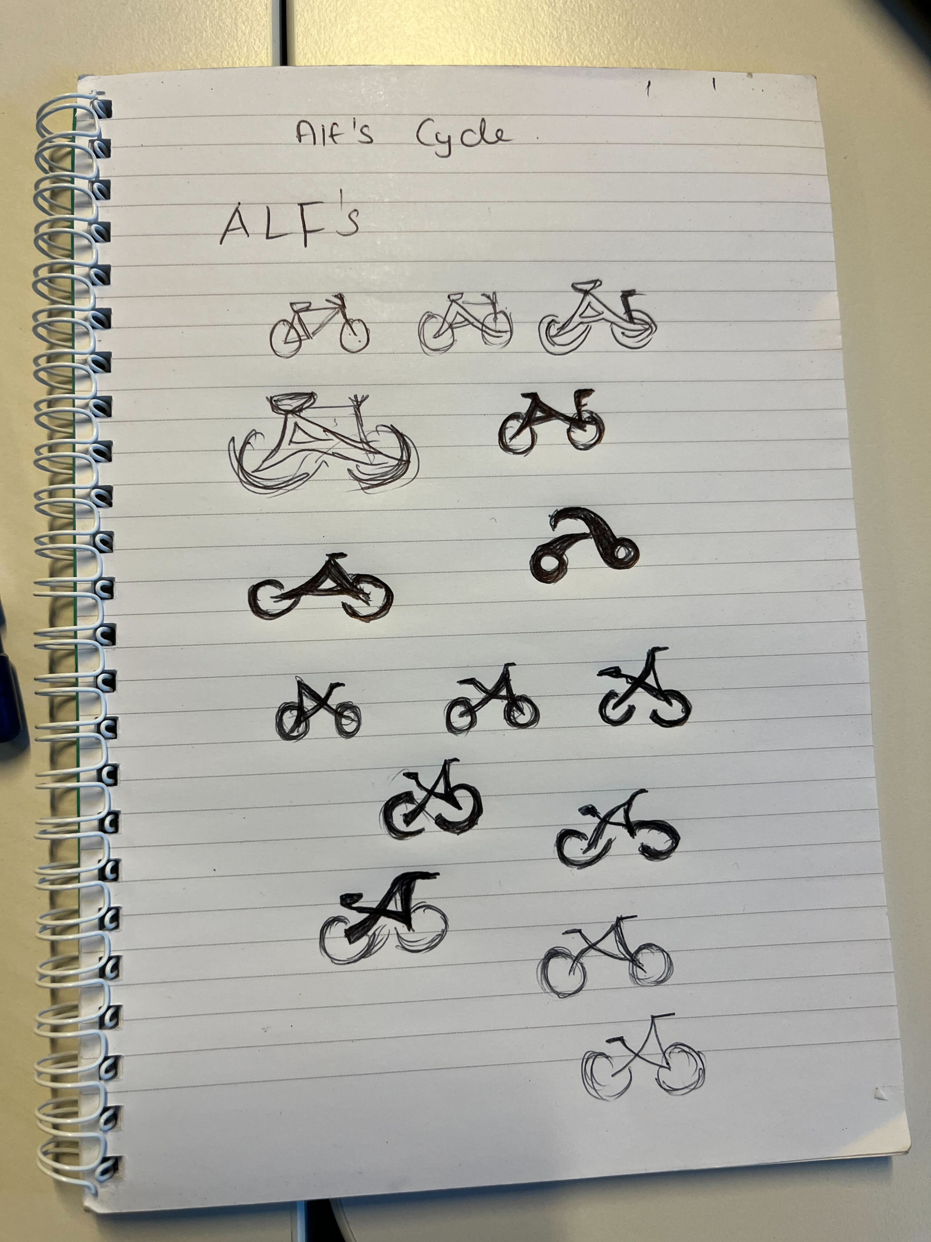 I spent a significant amount of time developing the logo for Alf’s Cycles, as the business did not have an existing brand identity. I wanted the logo to be simple, memorable and meaningful rather than decorative. The final logo is based around the letter “A”, taken from the name Alf’s, positioned in the centre to create a strong focal point. I then designed two circular forms on either side of the letter to represent bicycle wheels, allowing the logo to subtly read as a bike while remaining typographic.